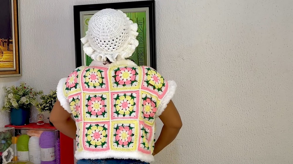 Learn how to crochet a vibrant Lollipop Jacket granny square cardigan with a step-by-step tutorial for all skill levels. Inspired by lollipop colors, this design uses granny squares using four yarn colors: pink, white, green, and yellow. The tutorial caters to beginners and employs clear instructions for crochet techniques, measurements, and assembly. T emphasizes creativity in color selection. So, to crochet this granny cardigan, follow through with us at the end!