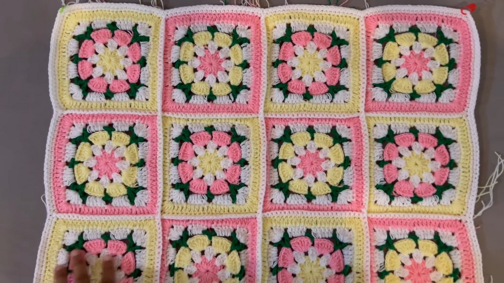 - The back consists of 12 granny squares joined together in a rectangular layout.