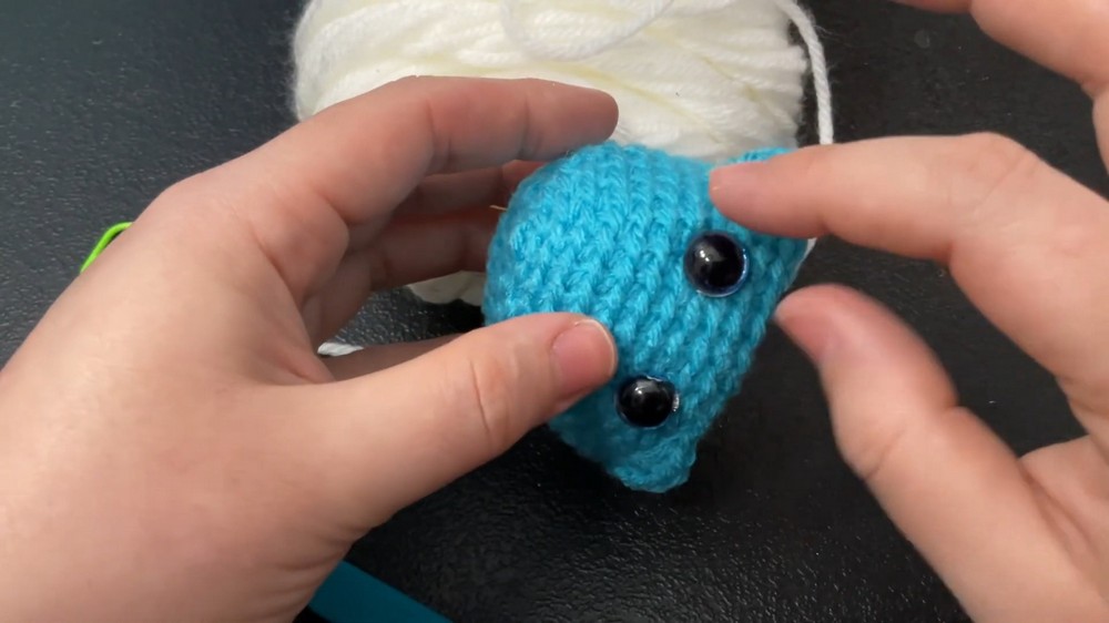 Eye Placement: The safety eyes are placed on the third row from where the side fins begin.