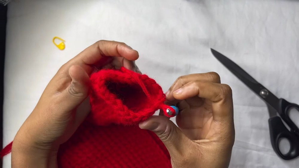 - At the marker points, make additional single crochets to ensure the bag’s shape.