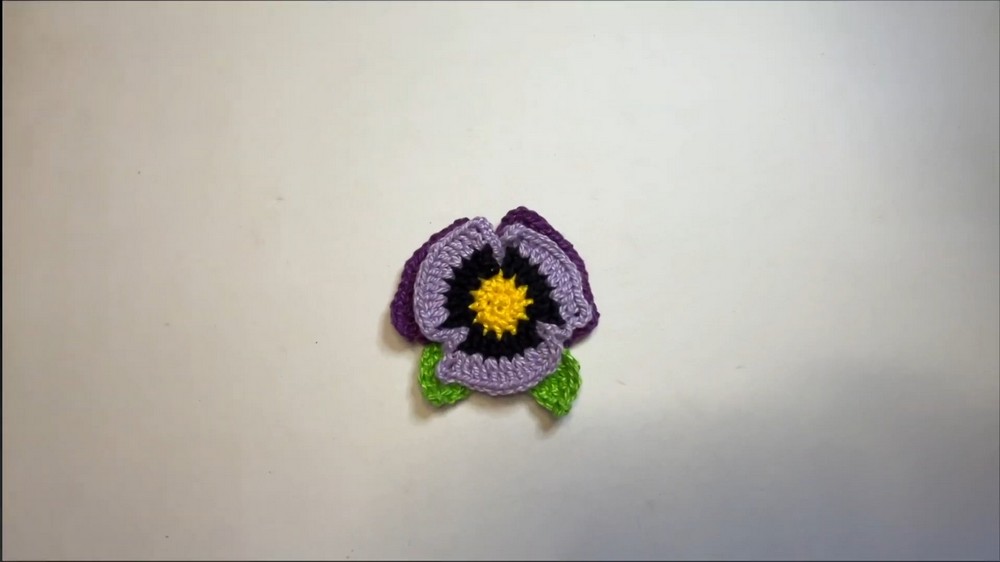 Following the flower, the video demonstrates how to crochet two separate leaves that will complement the pansy.