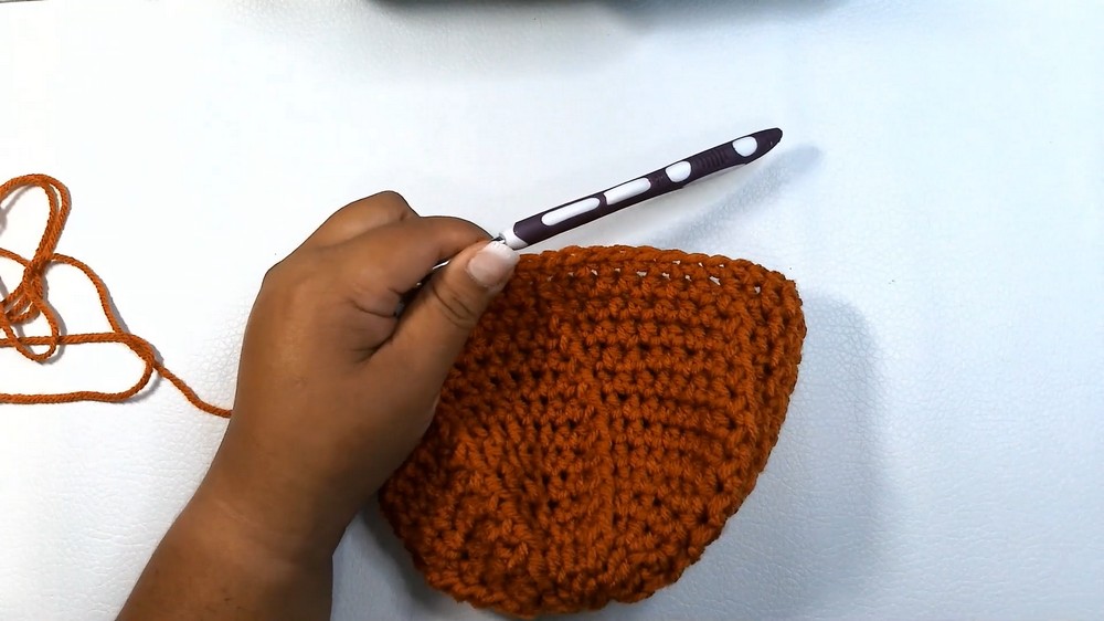 - Incorporate alternating stitches to create ridges, which give the hat its distinct pumpkin-like look.