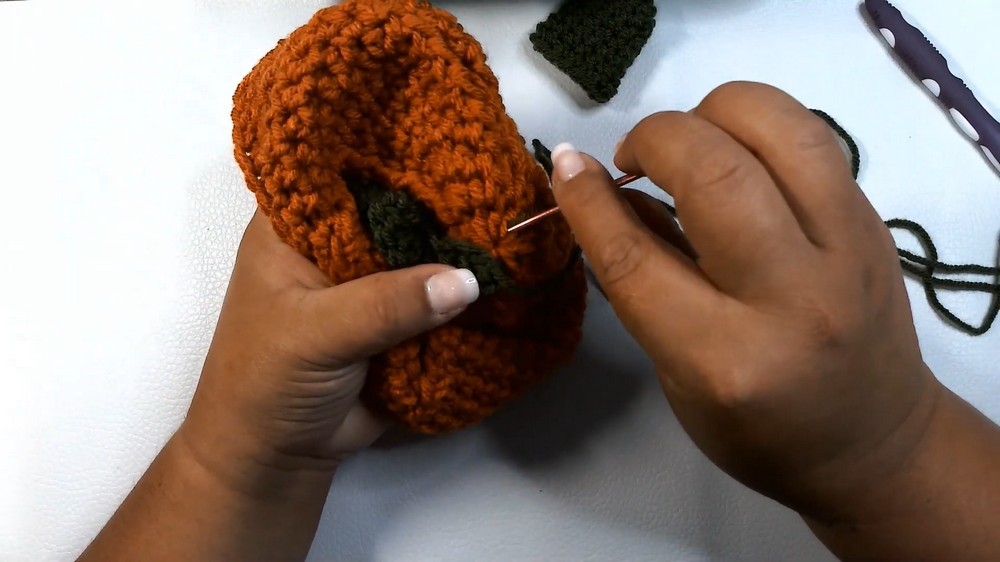 - Form the leaf shape using a combination of single crochet and increases, ensuring it lies flat but has enough texture and shape to mimic a real pumpkin leaf.