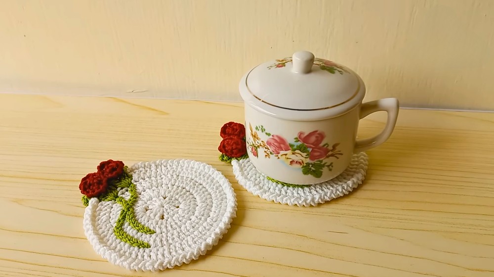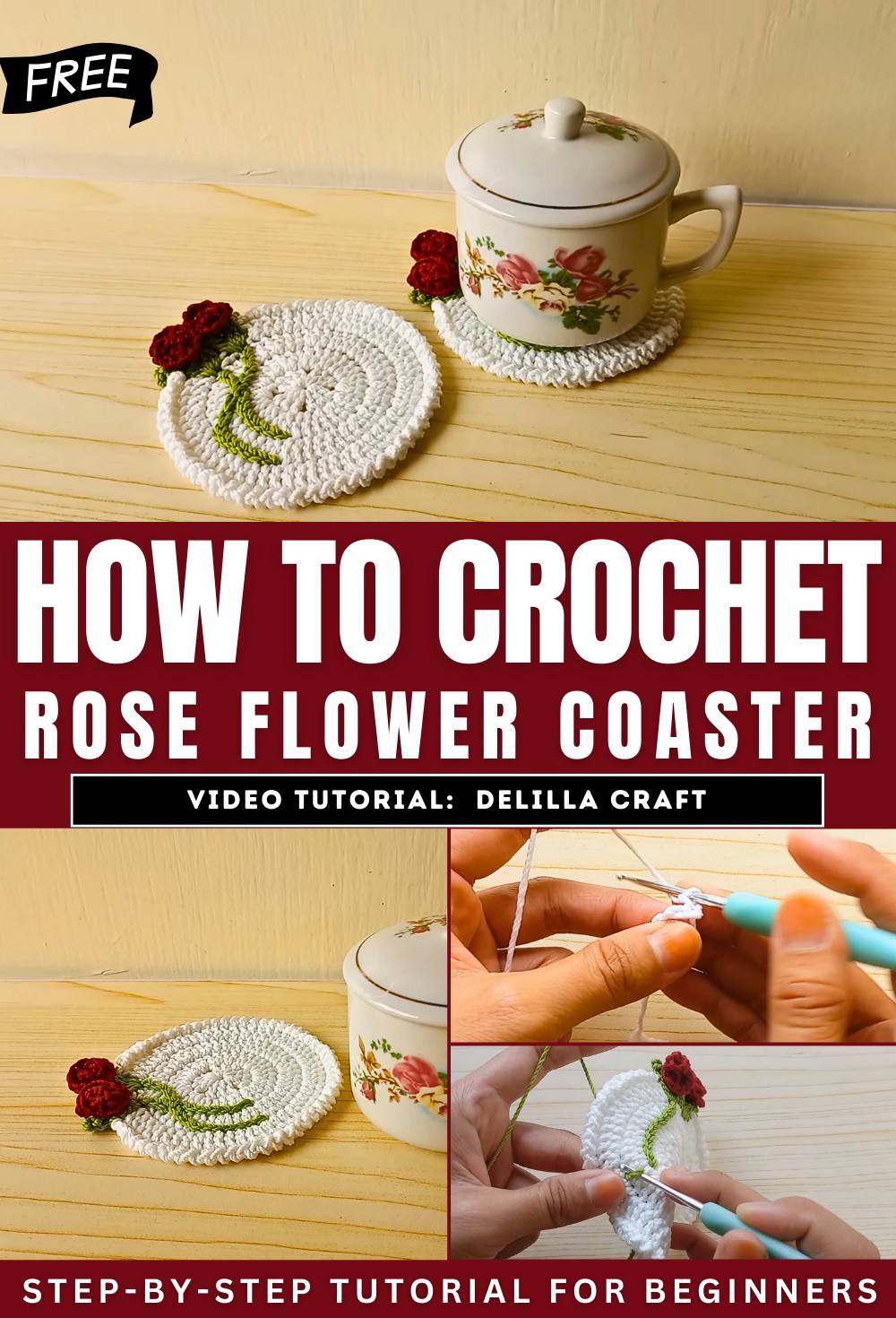How to Crochet ROSE FLOWER COASTER for a Cup of Coffee