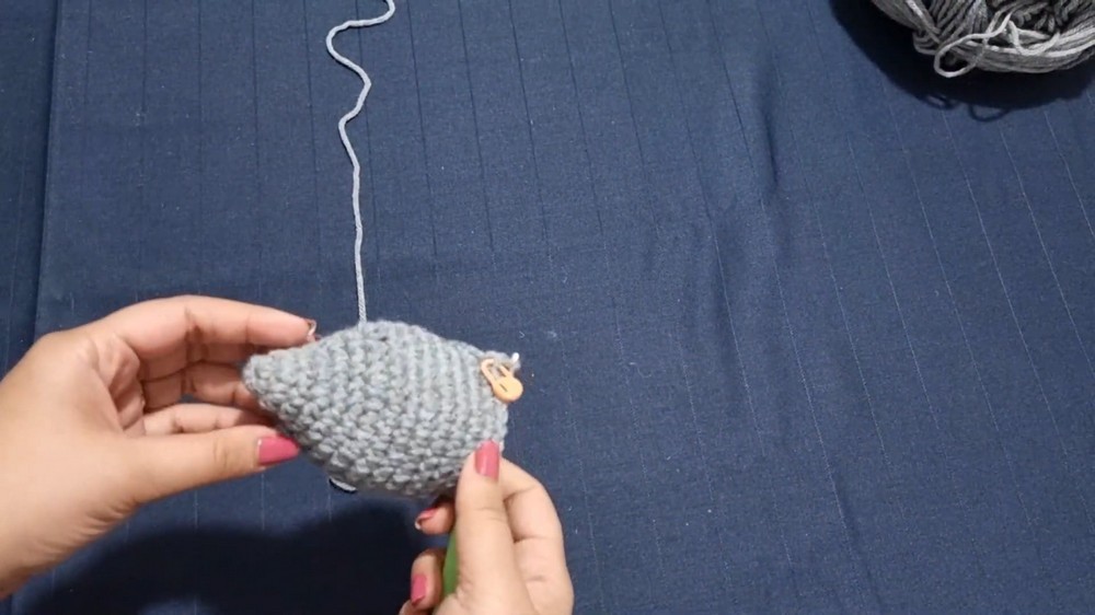 - Begin with a magic ring using the gray yarn to form the shark’s body.