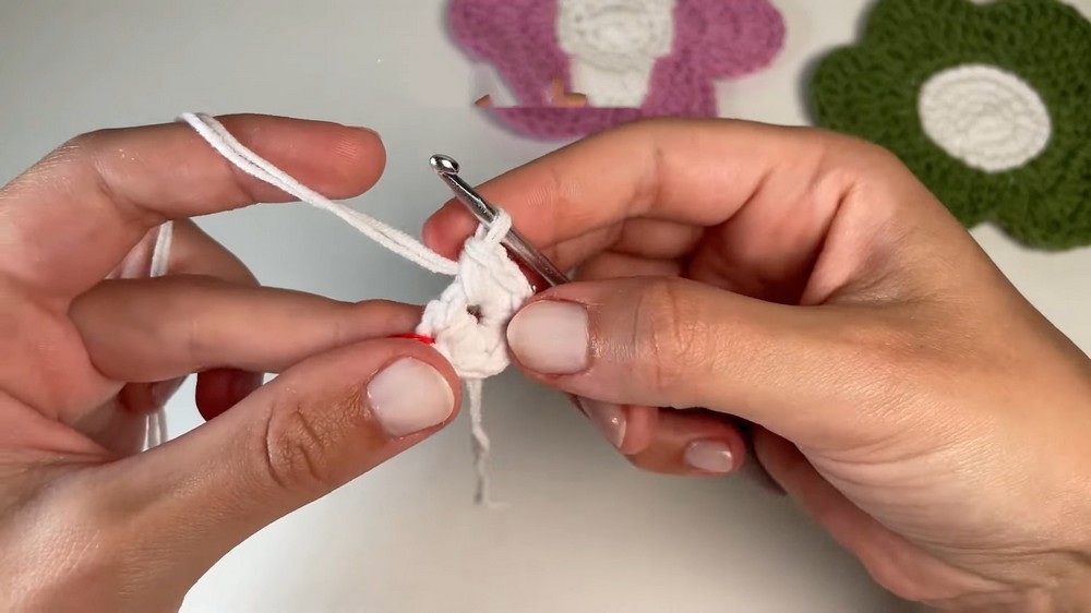 - Slip Knot: The tutorial begins with creating a slip knot as the starting stitch, followed by chaining four stitches to form a small base circle.