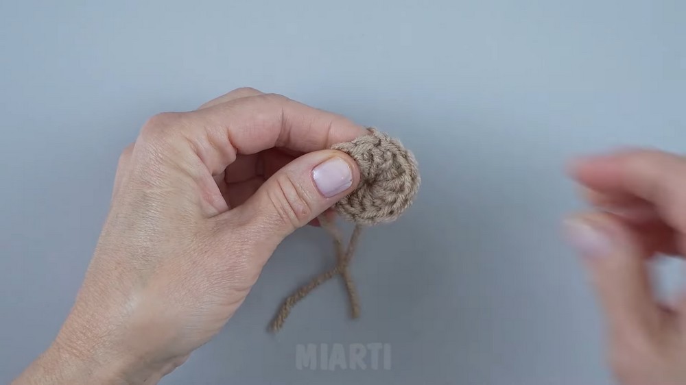 - The row is completed by joining with a slip stitch, forming a seamless round shape.
