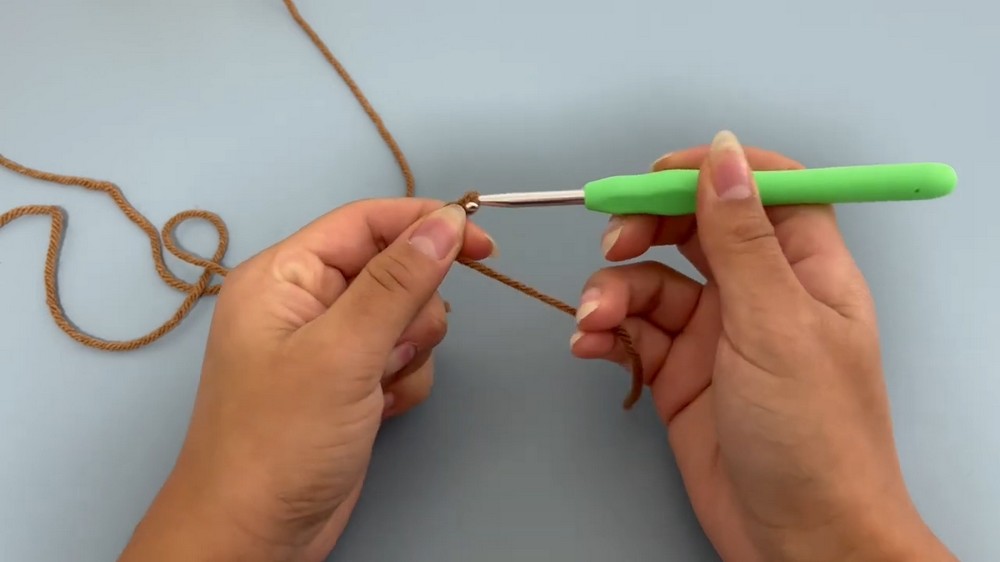 The tutorial begins with making a slip knot (Alexis shares her easy method) and creating a foundation chain in multiples of five, adding extra chains to accommodate the pattern. This chain serves as the base for the mesh design.