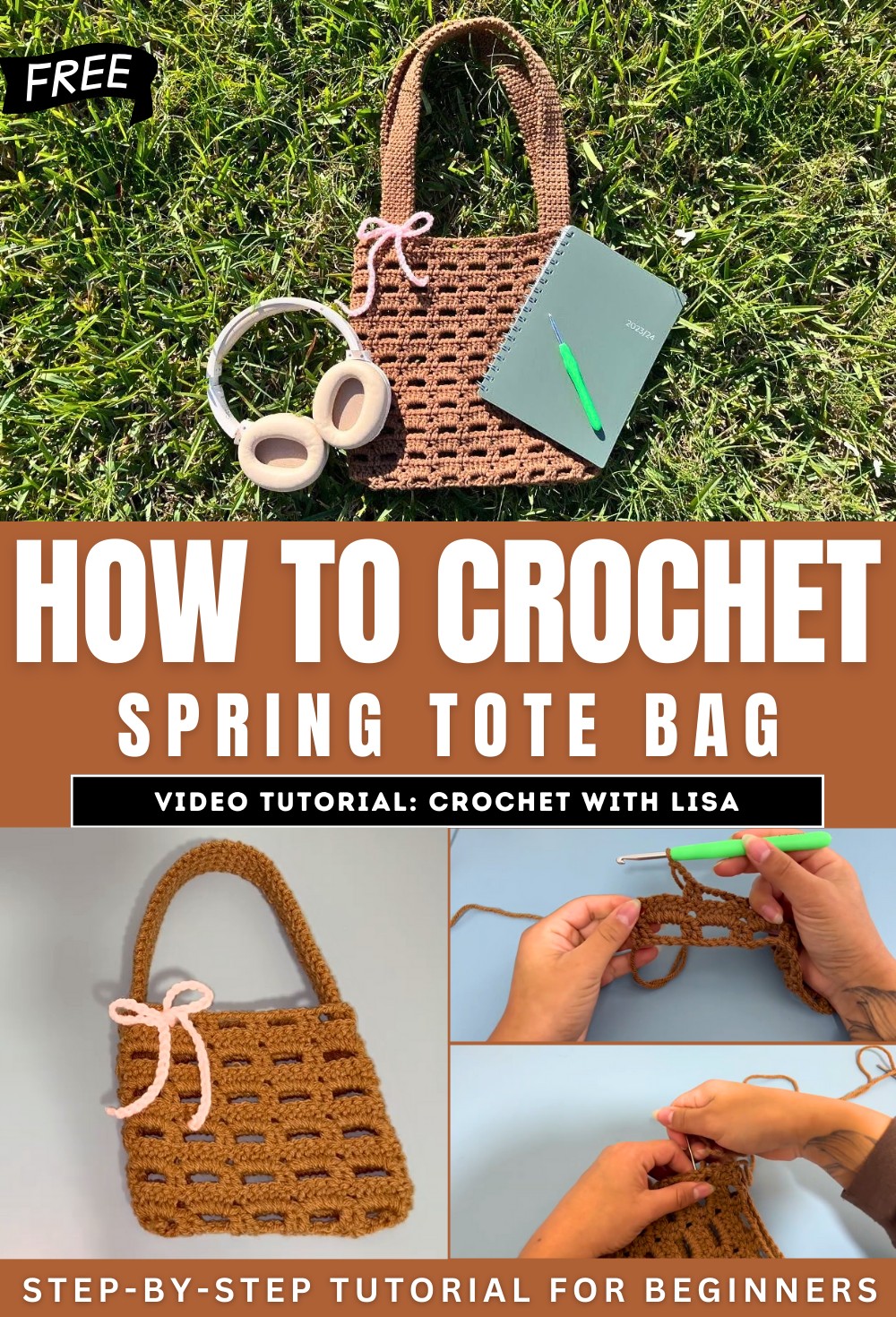 With a step-by-step tutorial, learn how to crochet a stylish and functional mesh bag perfect for spring, as well as an adorable mini version for decoration or kids. Using a 4.5mm hook and medium-weight yarn, she walks through creating the base, building the mesh pattern with double crochets and chain stitches, and assembling the bag. Detailed instructions for adding sturdy thermal stitch straps and optional decorative bows are also included.