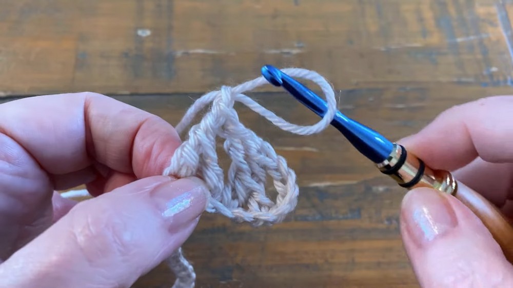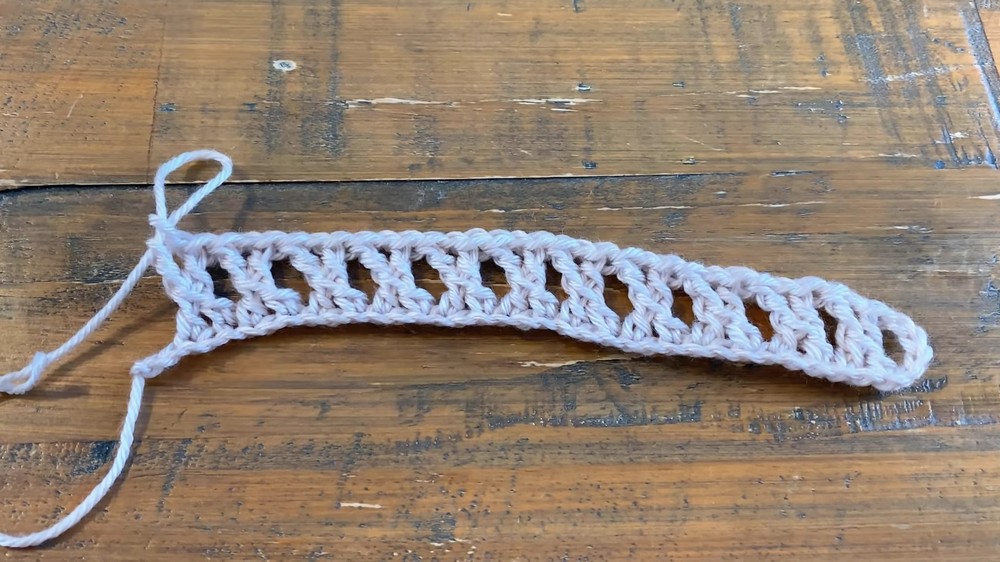 - Skip a chain and complete the stitch in the next, creating a crossed effect.