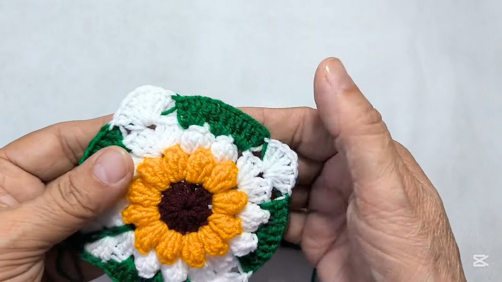 Learn how to crochet a sunflower square using three colors with a step-by-step tutorial for beginners. It covers the creation of the central base, the layering of yellow and white petals using double crochets and popcorn stitches, and the addition of green detailing. The video also demonstrates how to join multiple motifs neatly to create larger projects, such as cushion covers or table mats. Let’s get started!