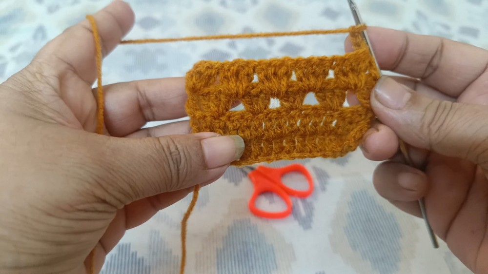 With a step-by-step tutorial, learn how to crochet a sunglass pouch with a tutorial for beginners. The project uses two colors of yarn, and a 9mm crochet hook. The main body of the pouch is crocheted as a single flat, rectangular piece using a foundation chain and a series of double crochet stitches. A decorative pattern is created by skipping stitches and working groups of double crochet stitches.