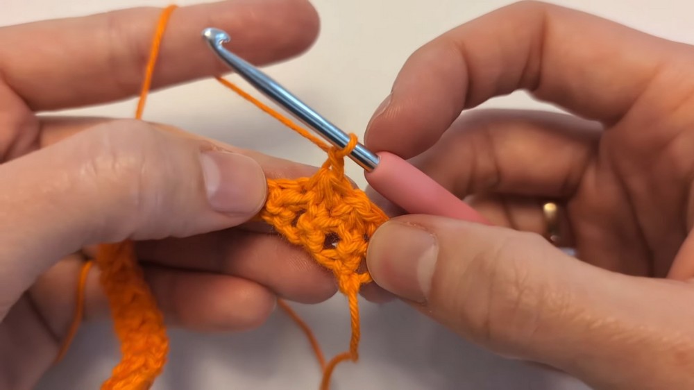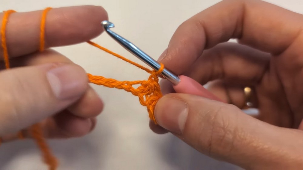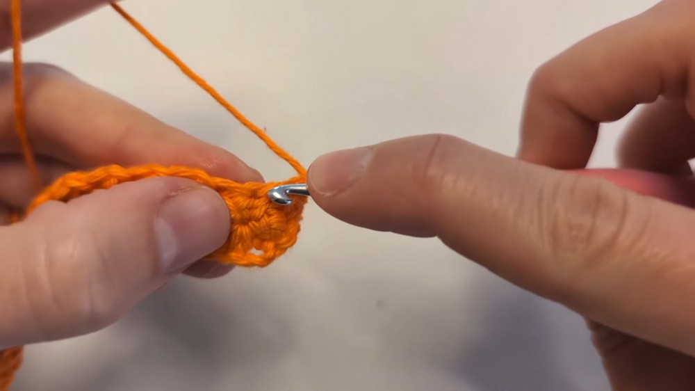 - Skip the last chain and insert the hook into the next one.