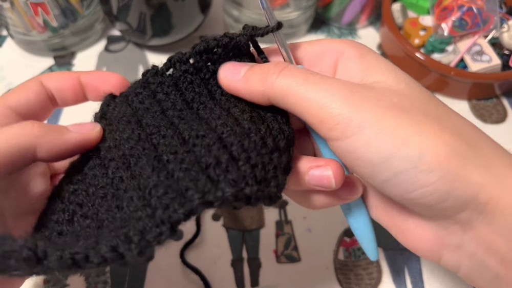 - The creator uses black and white yarn to match other projects, such as the corresponding store bag featured in a previous video.