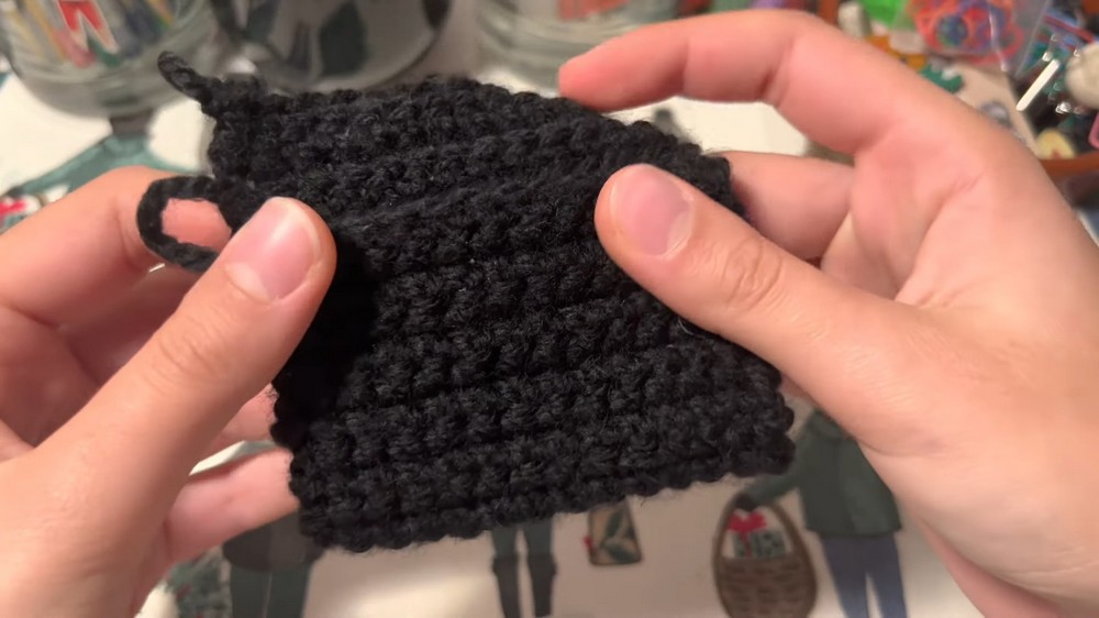 - The flap of the cardholder is built by crocheting additional rows on one side of the body.