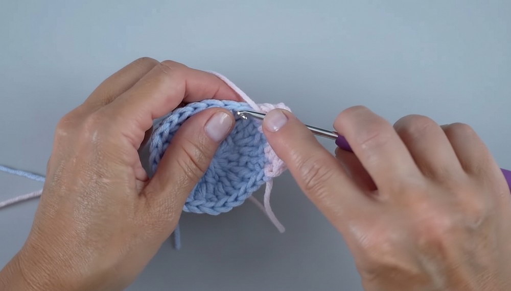 - Repeat the increase pattern: 2 sc in each st (6 times).