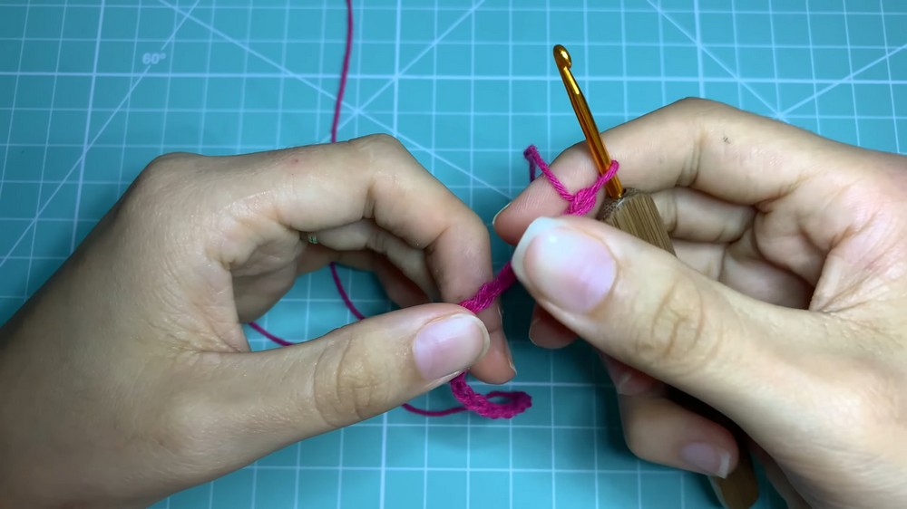 - Chain 4 (3 for the height of a double crochet + 1 for the space).