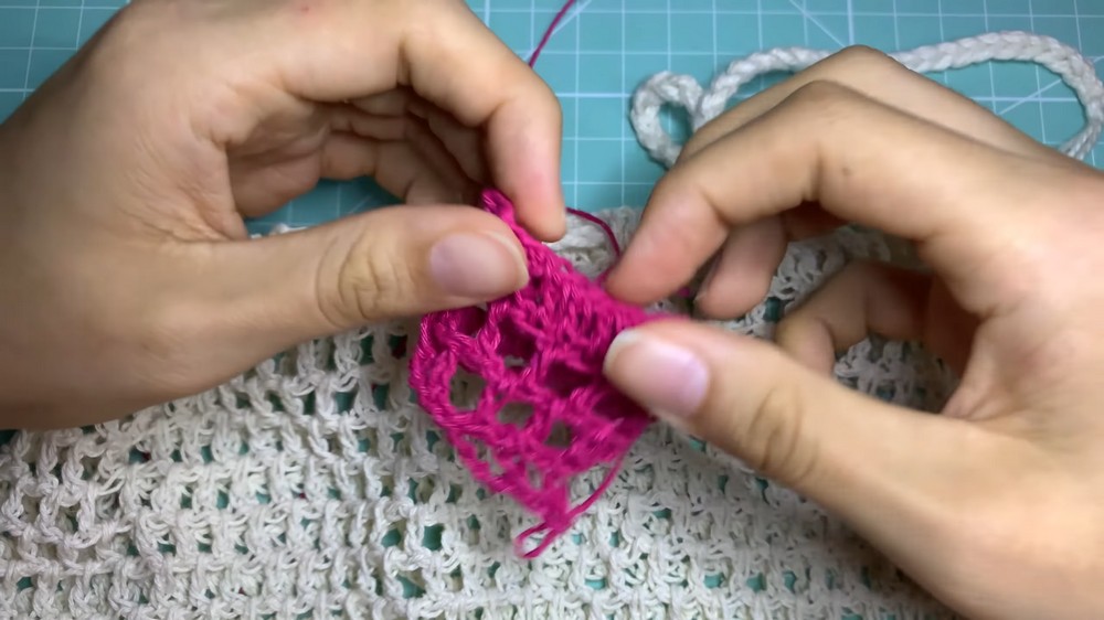 - Always work the double crochets into the chain spaces from the previous row (between double crochets).