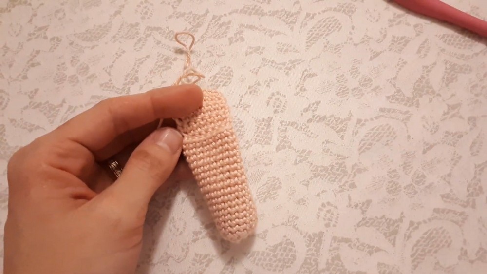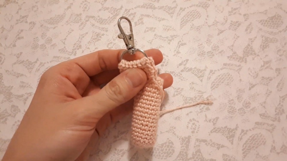 Finishing the Holder Body: After completing the desired number of rows, the stitch marker is removed, and one single crochet is made in the last stitch to complete the body of the holder.