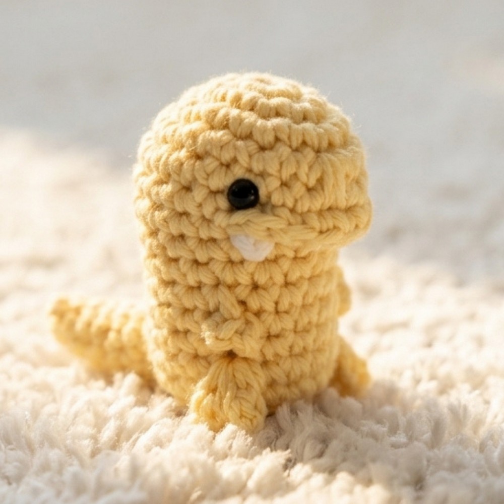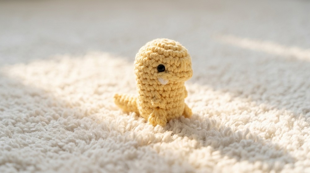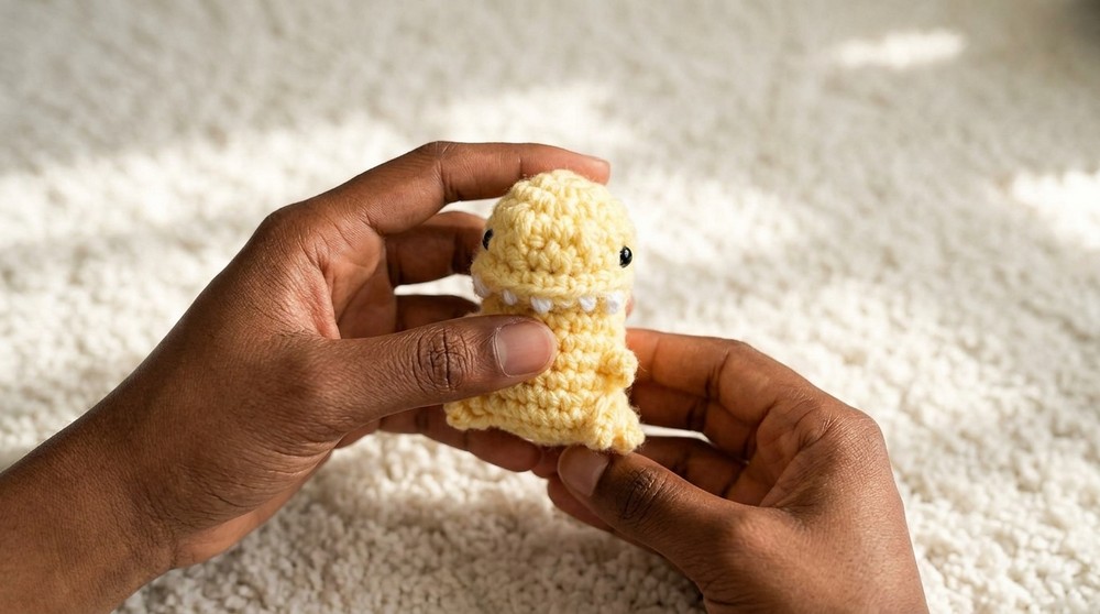 You now have an advanced, “no-sew-minimum” tiny T-Rex amigurumi! While challenging, the unique shaping and techniques make a striking, playful dino that’s sure to be a conversation starter.