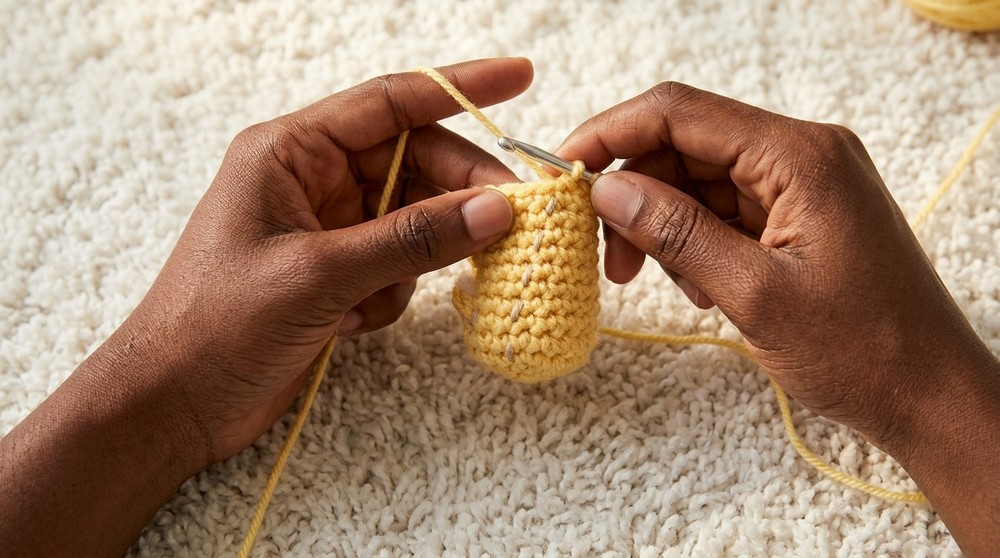 - Use a stitch marker to track the beginning of rounds.