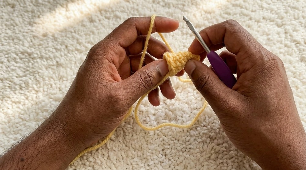 - Sk 1st ch, sc in next 2 ch.