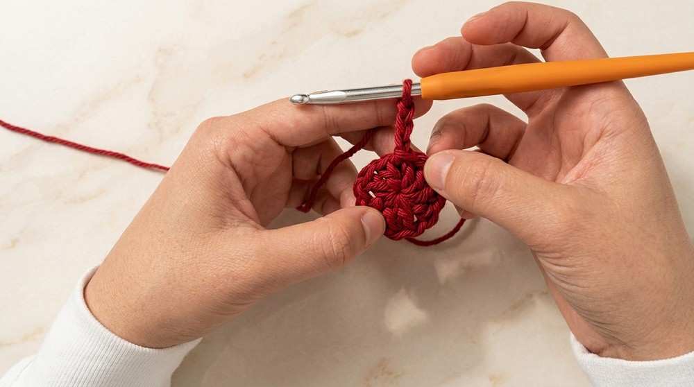 - Close magic ring tightly by pulling the inner and outer loops as shown in the video.