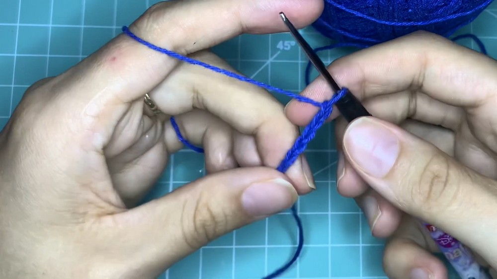 Ch 5, join with a slip stitch (sl st) to form a ring [00:49].