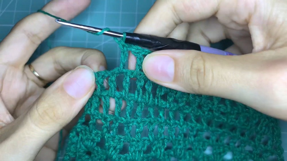 When joining squares, keep your tension consistent. If the joins are too tight, the top won’t stretch comfortably over the bust; if too loose, the squares may sag! [13:03]