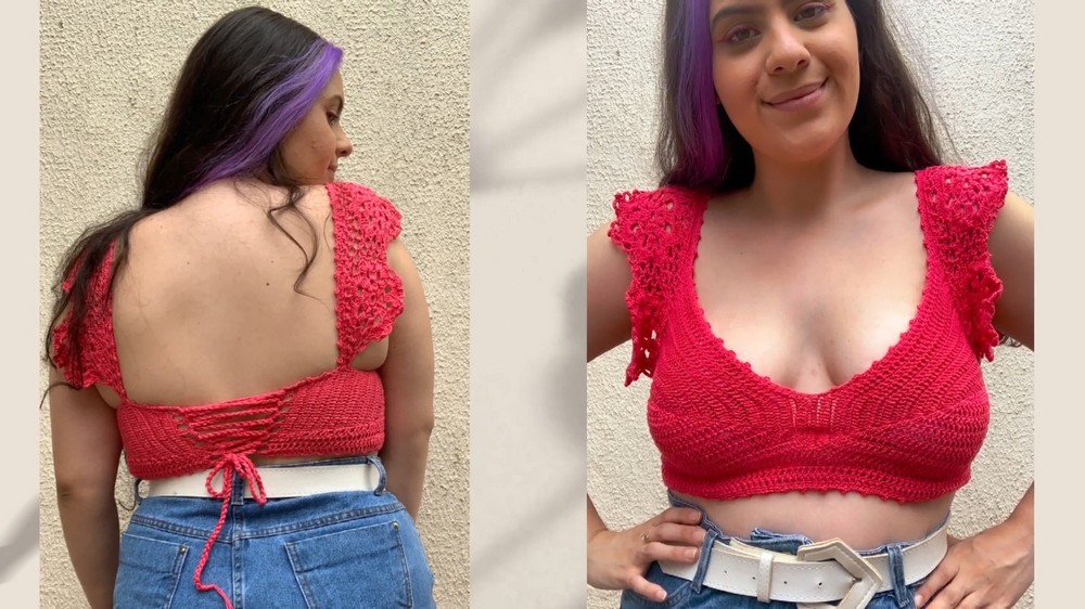 Refresh your wardrobe with this Crochet top with lace sleeves Pattern offering airy, soft, and graceful charm for warm days casual wear.