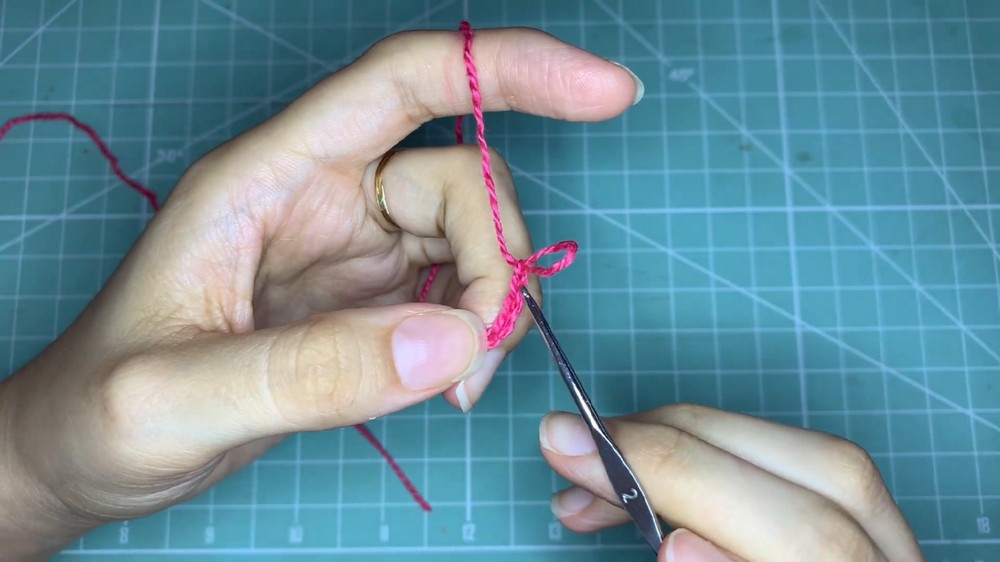When making the back cord, use the “triple-strand from one ball” technique (looping the yarn back on itself) so you can get a thick, sturdy tie without needing three separate balls of yarn.
