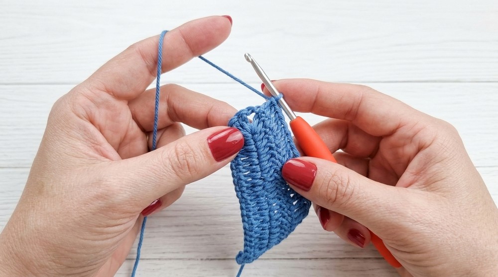 - Continue to sc along edge of triangle to end.