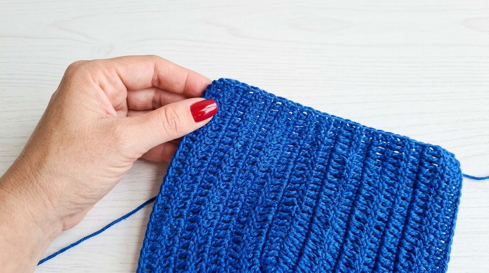 - At the top edge, attach yarn with sc.