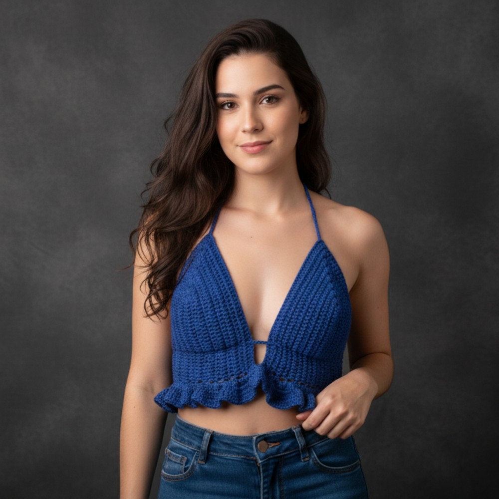 You have made a trendy, adjustable crochet summer top with a simple ruffled edge and secure ties. It’s easy to customize for your measurements by adjusting the initial chain, number of rows, and cord lengths.