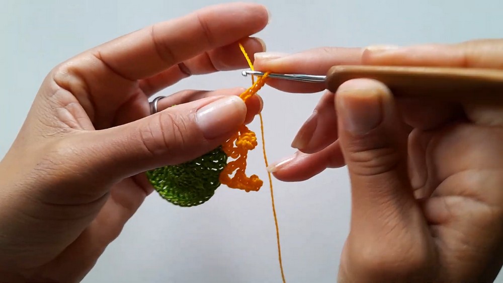- In same sp at base, work 1 dc.