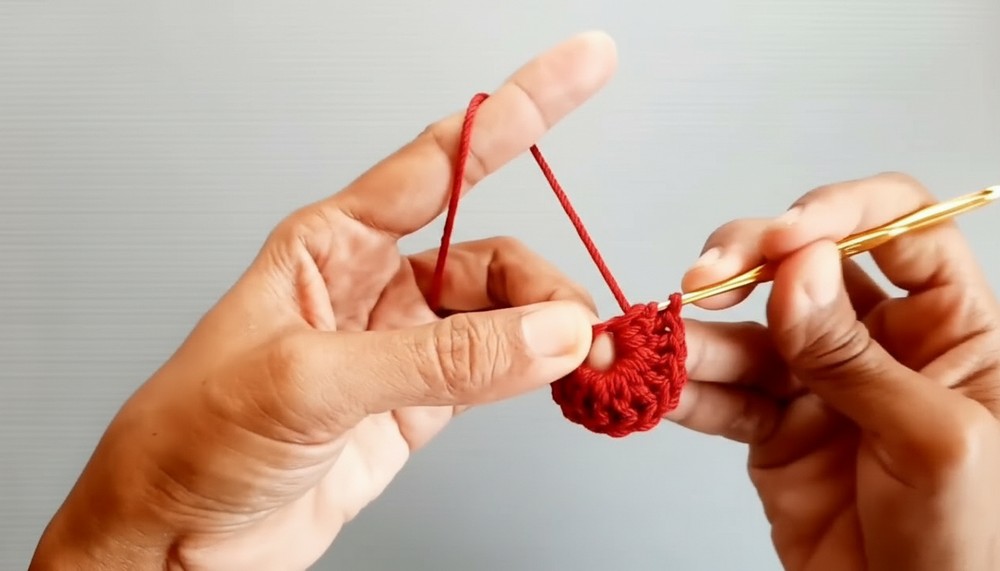 - Pull the ring tight, SL ST into the first DC to close (12 ST total).