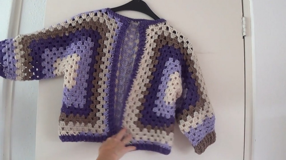 The cardigan’s length can be increased by adding rows along the bottom edge of the panels. The video shows how to start from a corner and crochet across the base for added coverage and style. Optional border techniques are also highlighted for a polished hemline.