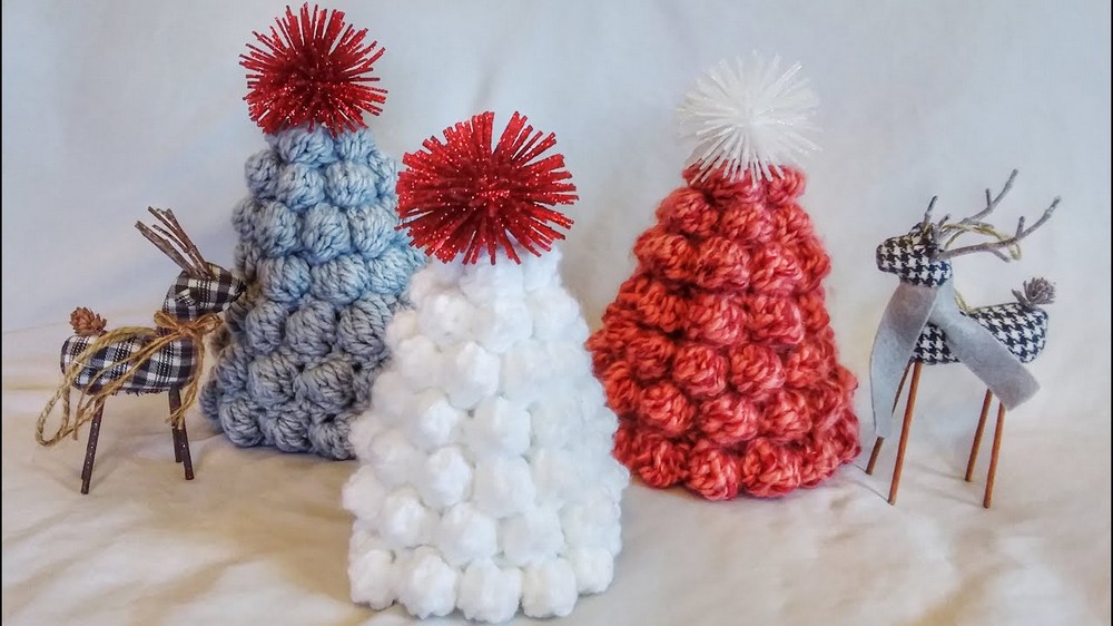 You can use any yarn or hook size, but bulky yarn works best for achieving the textured bobbles. The finished tree can be adorned with a star on top for added charm, making it a delightful project for holiday decorating or gifting.
