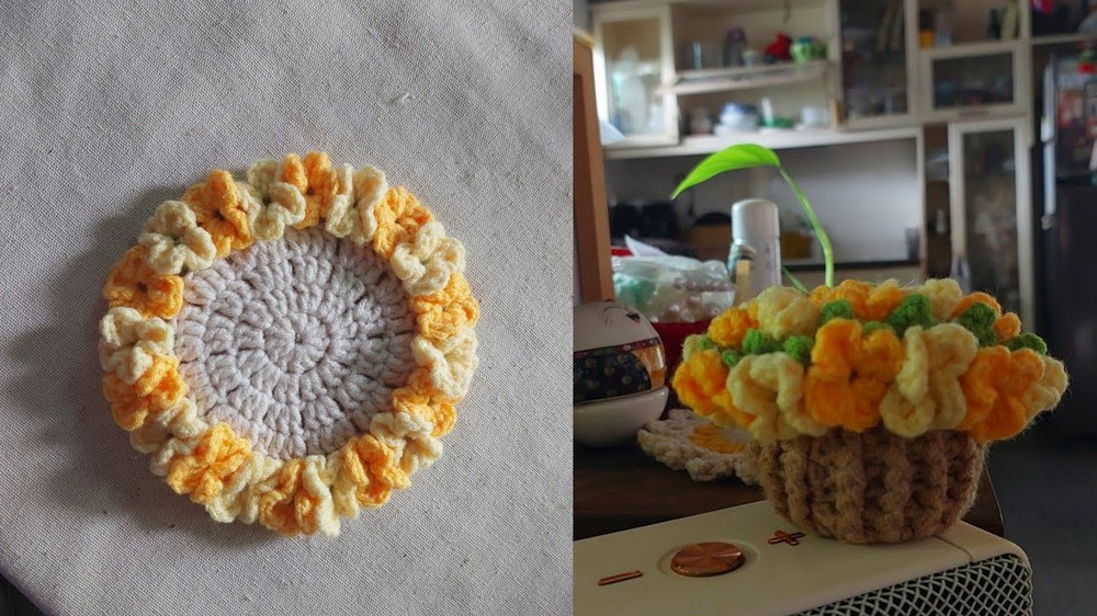 - The tutorial starts with a warm welcome to crocheters and introduces the project—a flower coaster that can be turned into a flower basket.