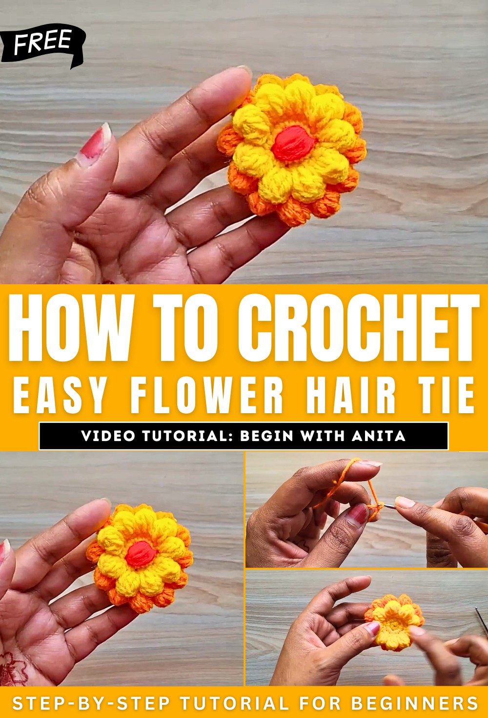 This video is a detailed tutorial on how to crochet a flower hair tie. The creator uses a 2.5 mm crochet hook and three different colors of yarn to make the hair accessory.