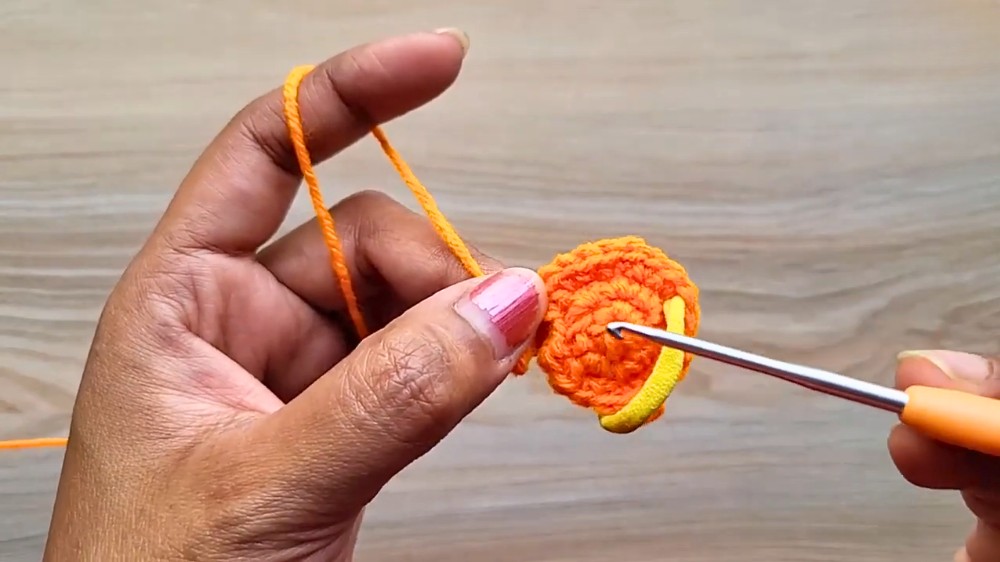 The video starts by showing how to create the base of the flower. This is done by making a magic ring and then crocheting several rounds of single crochet stitches. During the third round, a rubber band is attached to the crocheted piece. The base is completed after four rounds of increasing stitches.