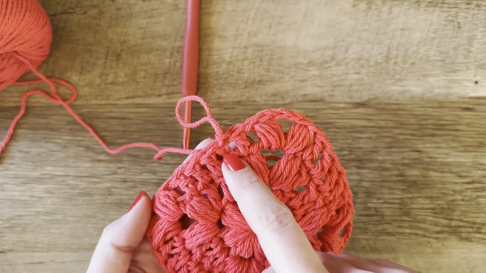 - The result is a fully formed granny square, ready to be transformed into a heart shape.