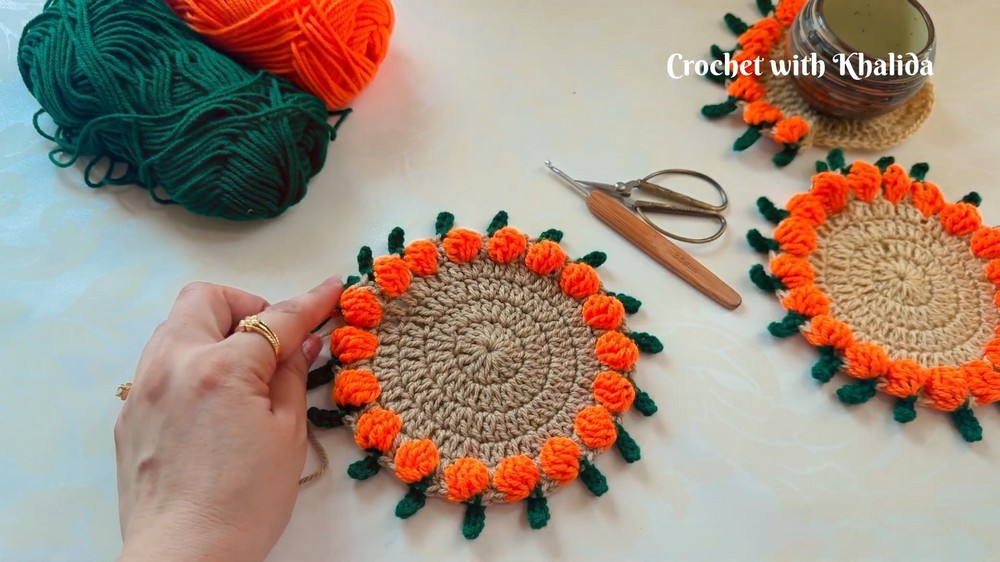 How To Crochet Pumpkin Bouquet Coaster for Fall