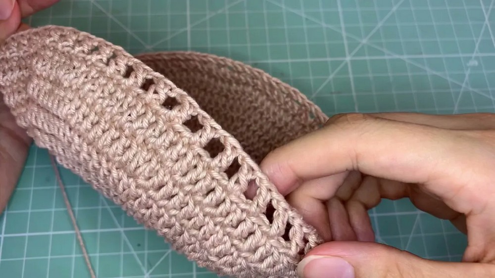 You work in rounds, adding more stitches to widen the circle until it fits your crown, then you move down to create the sides using an open “window” stitch pattern.