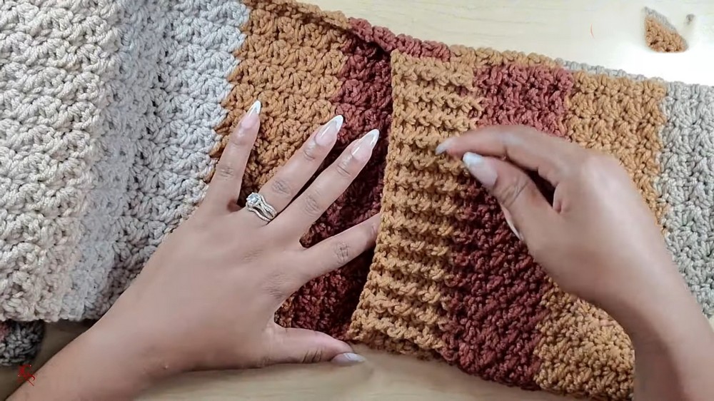 Positioning: Ensure the scarf is flipped to the correct side so that when sewn, the pockets face the desired direction.