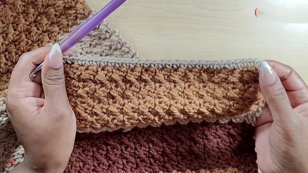 Continue the Suzette Stitch pattern: Skip one stitch, then in the next, make a single crochet and a double crochet in the same stitch.