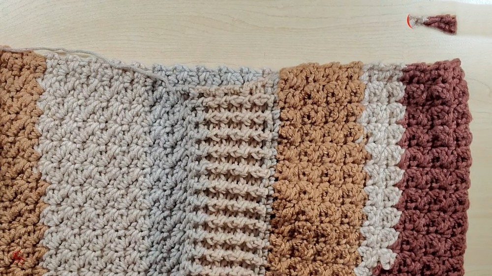 Desired Length: Continue repeating these steps until the scarf reaches the desired length. The creator made the scarf approximately 97 inches long, as a portion will be folded up to create the pockets.