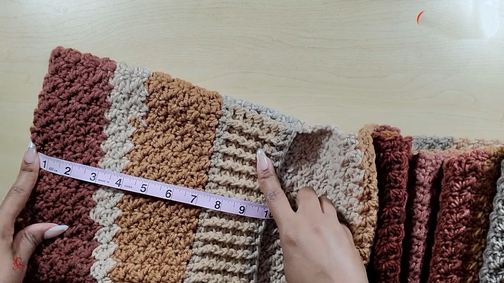 Folding for Pockets: Once the scarf reaches the desired length (e.g., 97 inches), fold up a section to form the pocket. The creator folded up about 7 inches for the pocket depth.