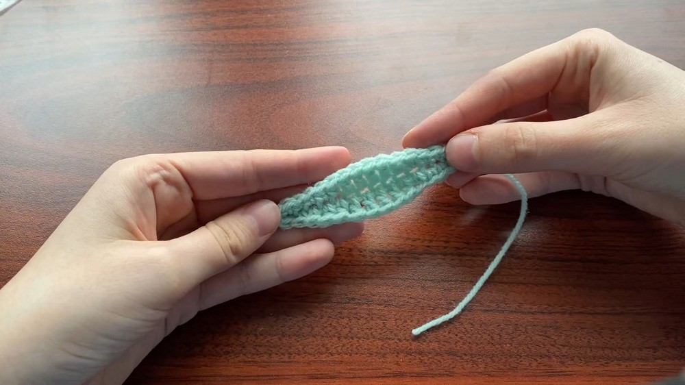 - After finishing both sides of the leaf, the yarn is cut, leaving a small length for later assembly.