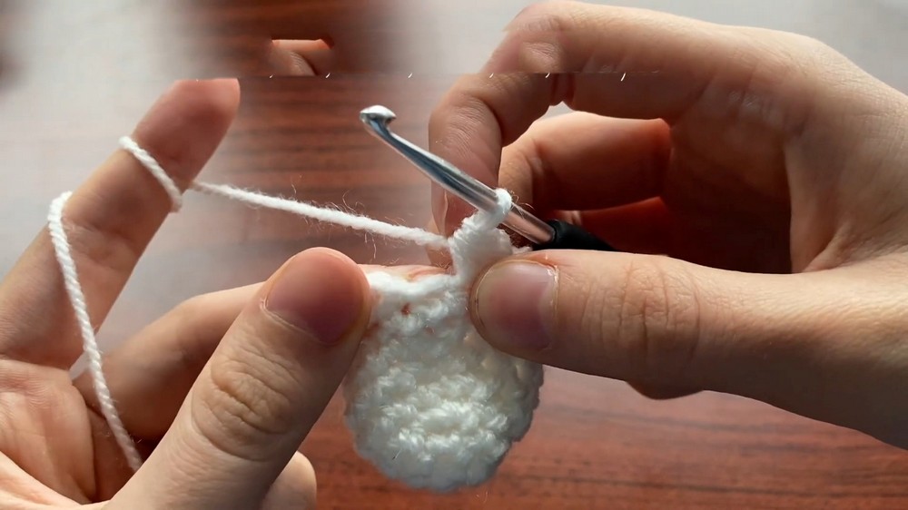 - Crochet rows consisting of single crochets, increases, and decreases to shape the flower base.